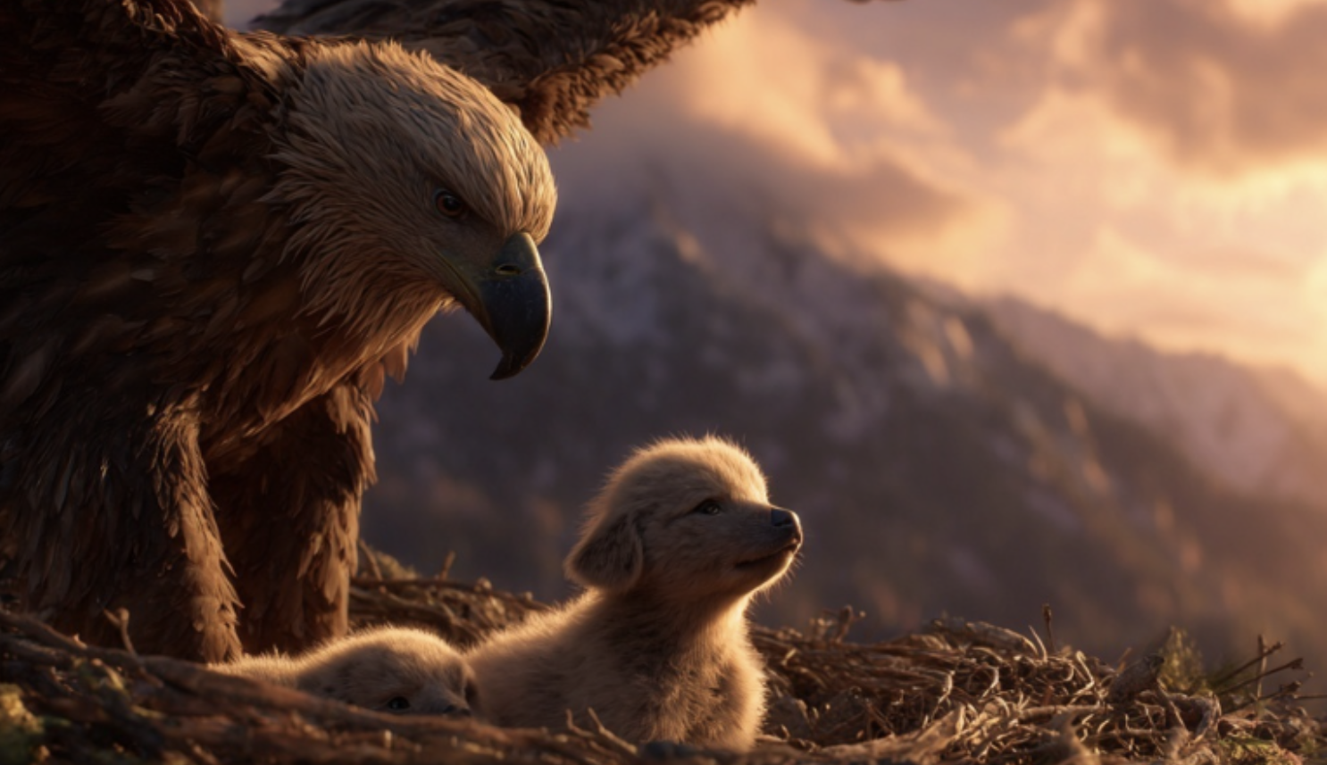 Nach ein paar Minuten stiller Beobachtung durch sein Fernglas wandte sich Dr. Carter an die Gruppe und erklärte etwas, das alle erneut sprachlos machte. „So etwas ist äußerst selten“, sagte er. „Aber ich glaube, die Adlerin hat den Welpen für eines ihrer Jungen gehalten, nicht für Beute. Adler sind kluge Tiere. Wenn sie erst kürzlich geschlüpfte Küken hat, könnte sie Schwierigkeiten haben, sie warm oder ruhig zu halten. Der Geruch oder das Verhalten des Welpen könnte ihren Fürsorgeinstinkt ausgelöst haben.“ Mit anderen Worten: Die Adlerin hatte den Welpen nicht entführen wollen, um ihm zu schaden. Sie hatte ihn adoptiert.